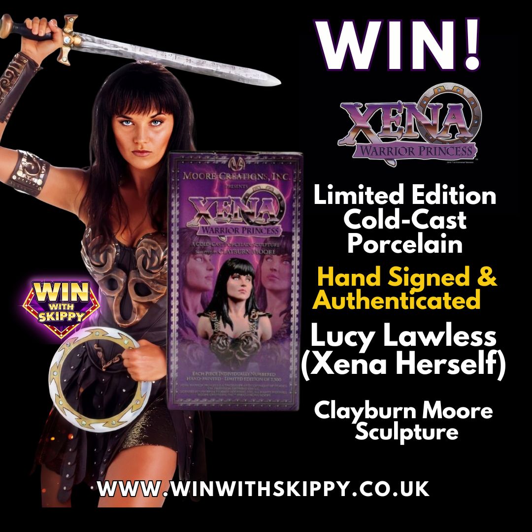 Up for grabs is a Limited Edition Xena: Warrior Princess cold-cast porcelain sculpture, hand-signed and authenticated by Lucy Lawless herself — the iconic star who brought Xena to life.