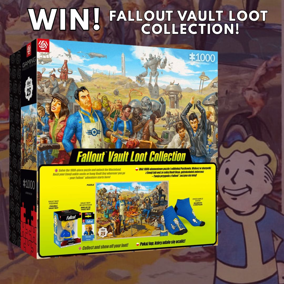 This collectible set includes a 1000-piece Fallout puzzle, a Vault Boy figure, a Vault Boy keychain, and a pair of Vault-Tec themed socks – perfect for any survivor of the wasteland.