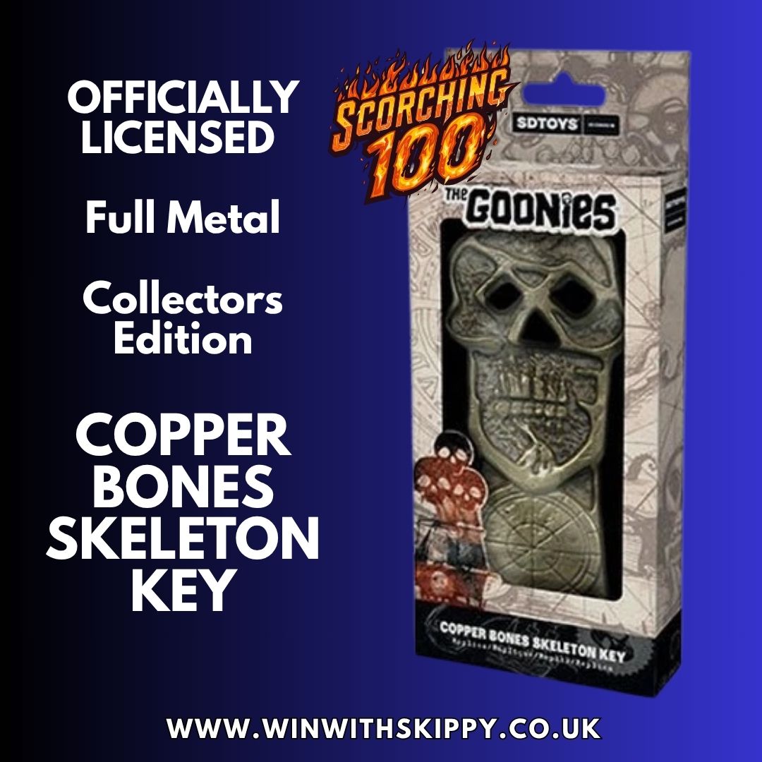 SCORCHING 100! – 100 Tickets! Hey You Guys…FULL METAL Collectors Edition The Goonies Copper Bones Skeleton Key